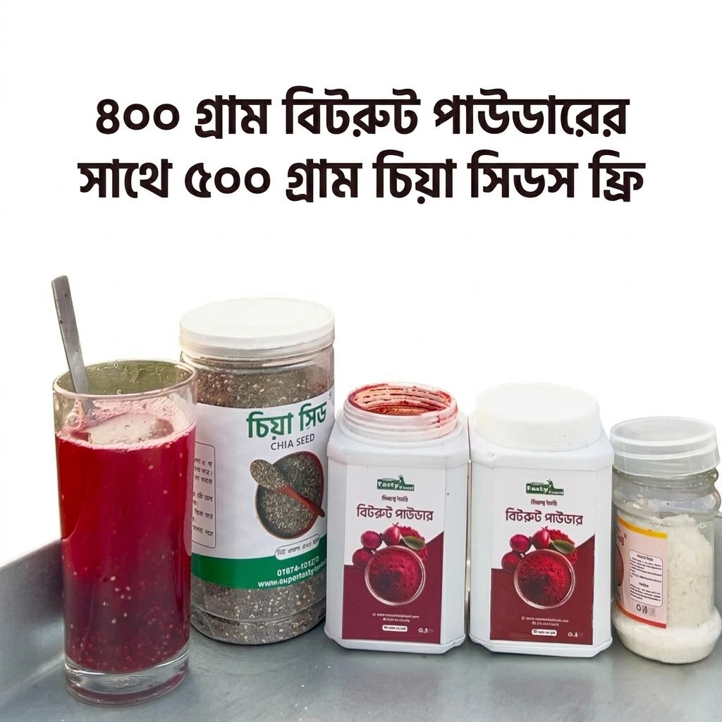 বিটরুট পাউডার ২০০ গ্রাম ২ কৌটা= ৪০০গ্রামের সাথে(৫০০ গ্রাম চিয়া সিডস ফ্রি+১০০ গ্রাম পিংক সিল্ট ফ্রি)